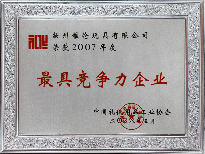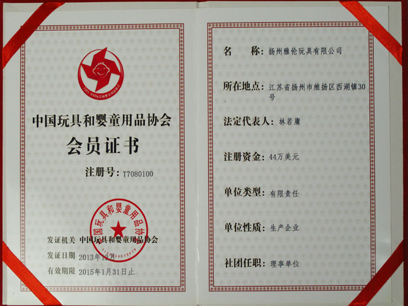 ? ? ? ? 雅倫公司創(chuàng)建以來(lái),一貫積極推行產(chǎn)品質(zhì)量保證體系。2001年至今通過(guò)ISO9001質(zhì)量體系認(rèn)證的審核。同時(shí)公司也大力踐行企業(yè)的社會(huì)責(zé)任體系建設(shè)。2005年以來(lái)通過(guò)了DISNEY、WAL-MART、TARGET、COCA-COLA、KOLHS等公司的驗(yàn)廠,2006年初又成為揚(yáng)州市首家獲得國(guó)際ICTI證書(shū)的玩具廠家,2007年2月成為第一家通過(guò) ISO14000環(huán)境認(rèn)證的玩具企業(yè)。 這些都使公司擁有了充分的平臺(tái)和實(shí)力與國(guó)內(nèi)外知名企業(yè)合作,為世界各地不同的市場(chǎng)提供優(yōu)質(zhì)并且符合社會(huì)共同道德價(jià)值觀的產(chǎn)品